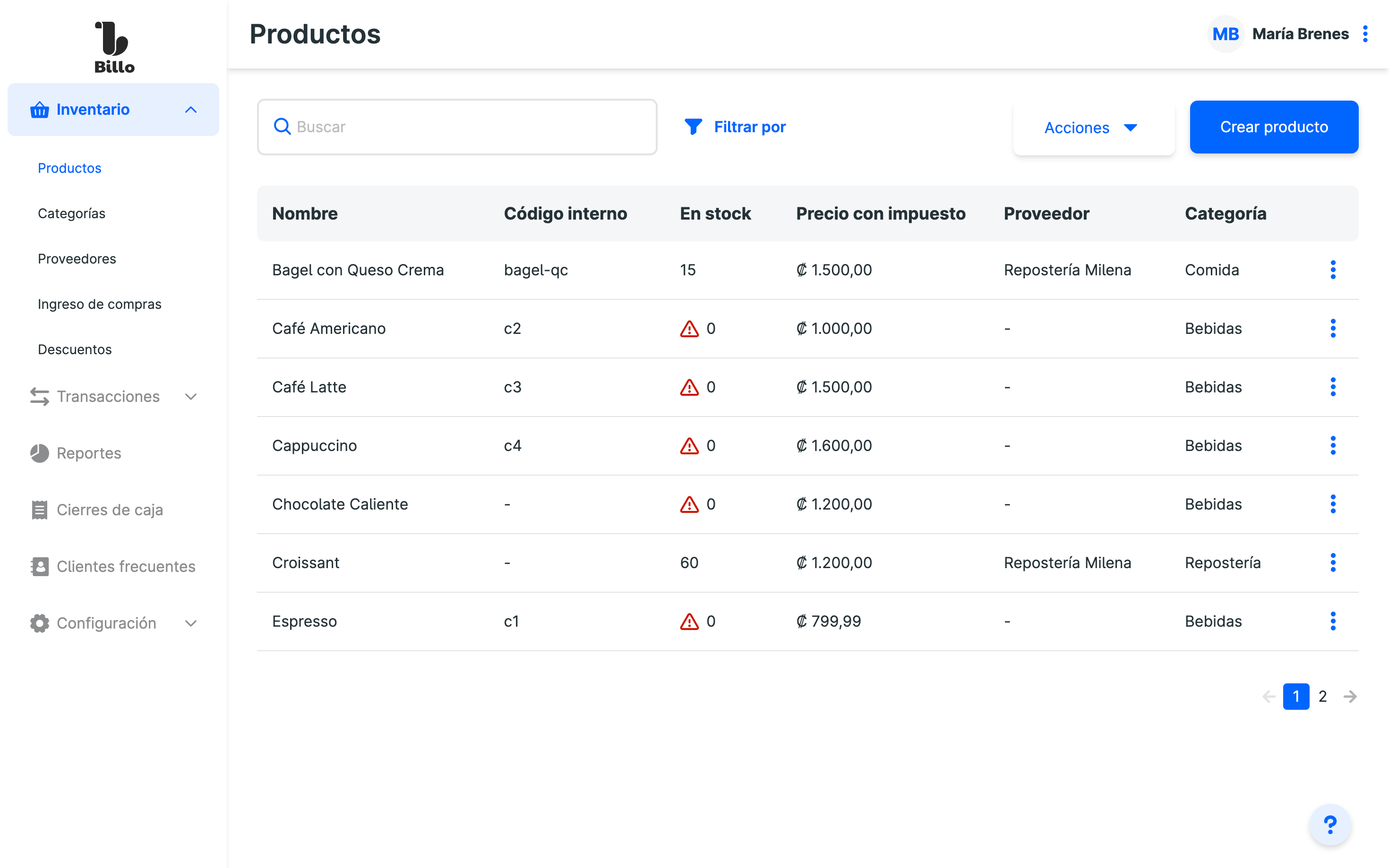 Importá tu inventario desde un documento Excel o creá cada uno manualmente. Podés organizarlos en categorías para encontrarlos más fácilmente en el app Billo POS.