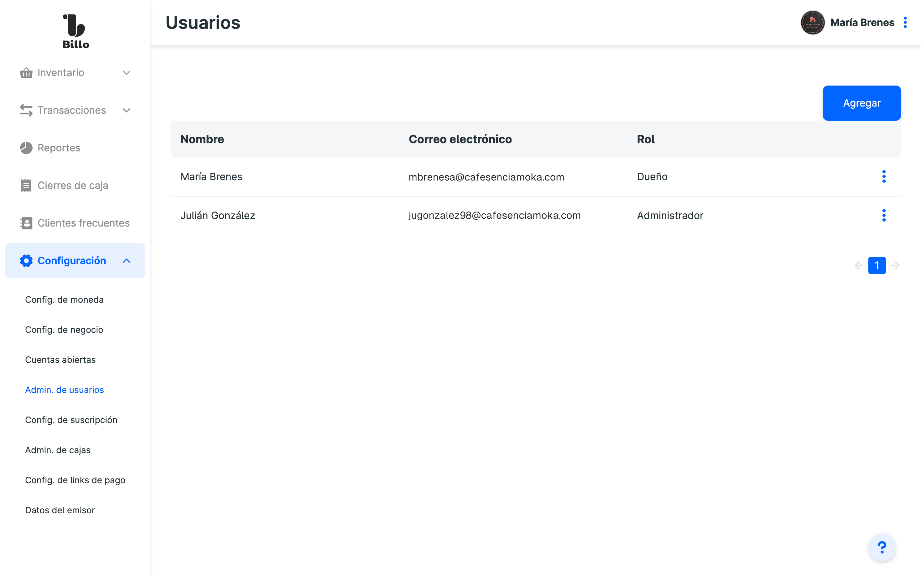 Creá un usuario para un dependiente o administrador de tu negocio en Configuración > Admin. de usuarios. Al crearlo, se le enviará un correo electrónico con la contraseña temporal para acceder a Billo. Cada usuario, al iniciar sesión, podrá crear su propia contraseña. - Creá tu primera factura.